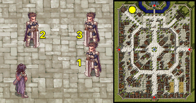 Bước 2: /navi prontera 75/355 Di chuyển ra bên ngoài căn nhà và nói chuyện với nhóm Hiệp sĩ.