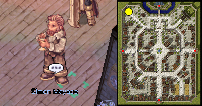 Bước 2: /navi prt_in 82/98 Tìm Simon Mayace ở Hội Hiệp Sĩ tại góc 11 giờ thành phố Prontera.